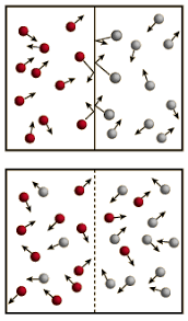 difusión, el proceso por el cual las moléculas se entremezclan, como